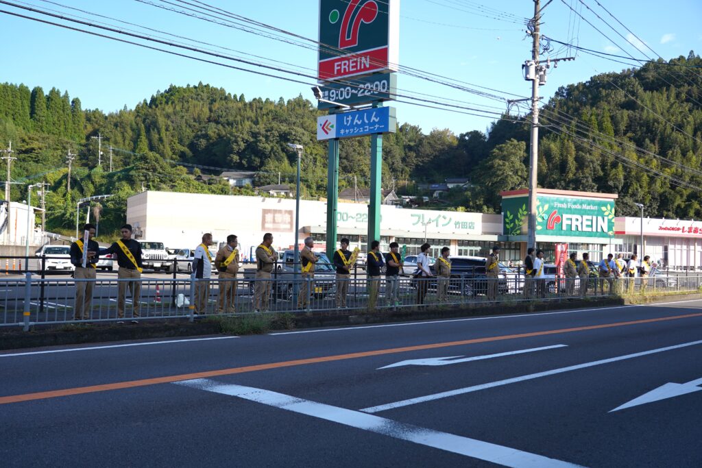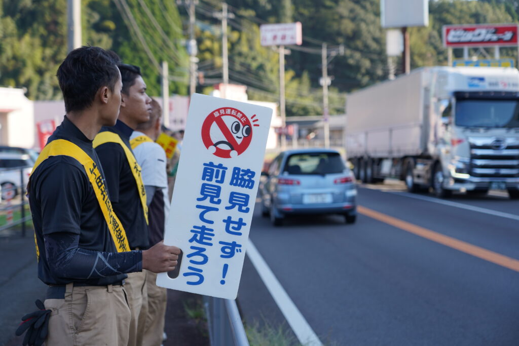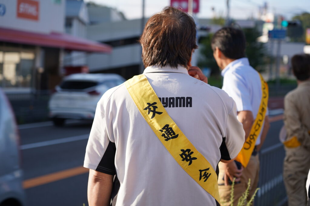 高山組では、社員が「秋の全国交通安全週間」に合わせて、街頭での交通安全指導に参加しました。