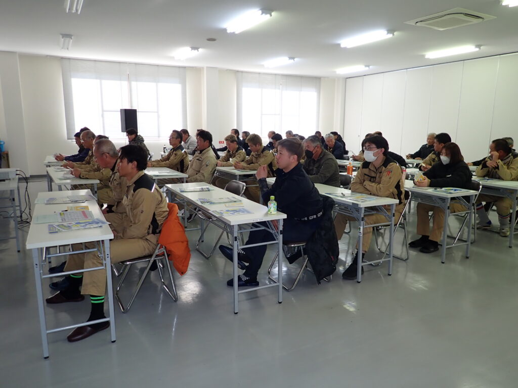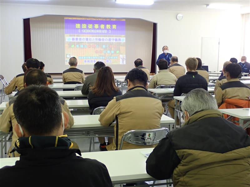 今年度も建災防(建設業労働災害防止協会)による「建設業に従事する労働者に対する安全衛生教育」を、当社社員に加え、協力業者の皆さまにもご参加いただき実施しました。