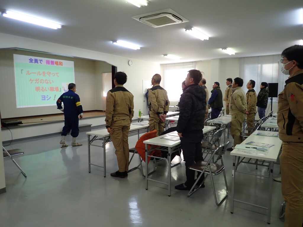 午前中は座学を中心に、教育用ビデオの視聴や実際に発生した災害事例をもとに、災害防止の重要性について学びました。日々の作業の中に潜む危険や、基本動作の大切さを再確認する有意義な時間となりました。