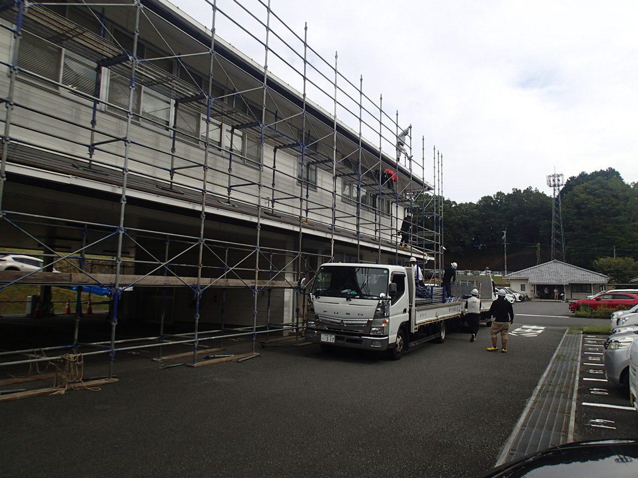 市役所の車庫棟の屋根や柱などの塗装工事を、9月から10月にかけて施工いたしました。